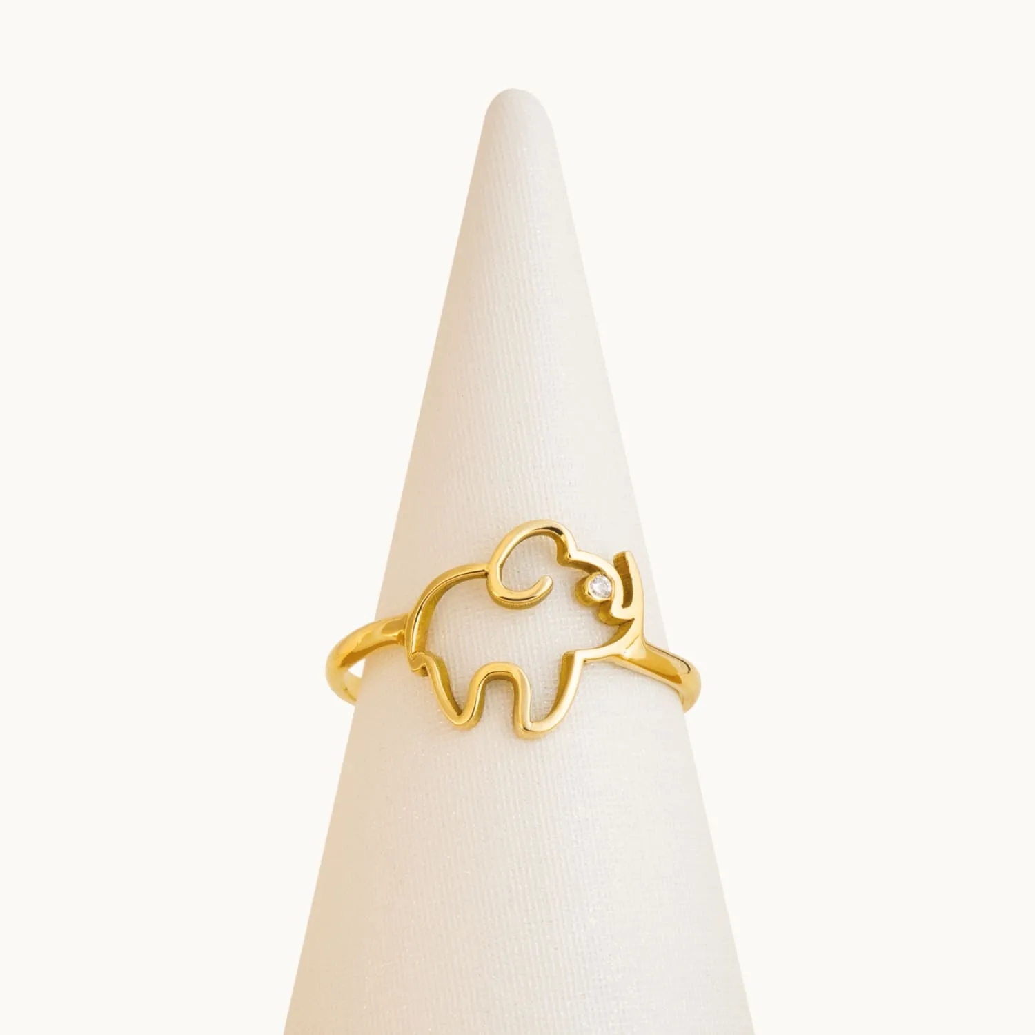 Anillo en oro amarillo de 18K con diseño de elefante y diamante natural de 0.01 ct.