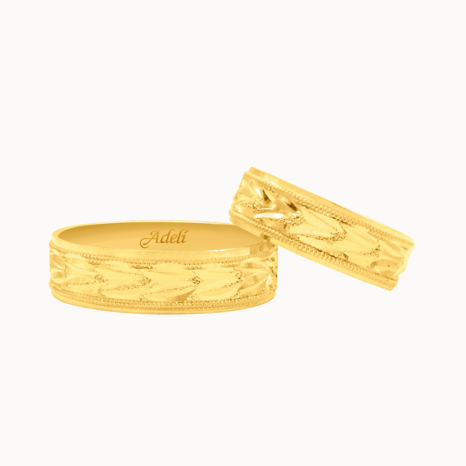 Aros de matrimonio en oro amarillo de 18K diamantado especial