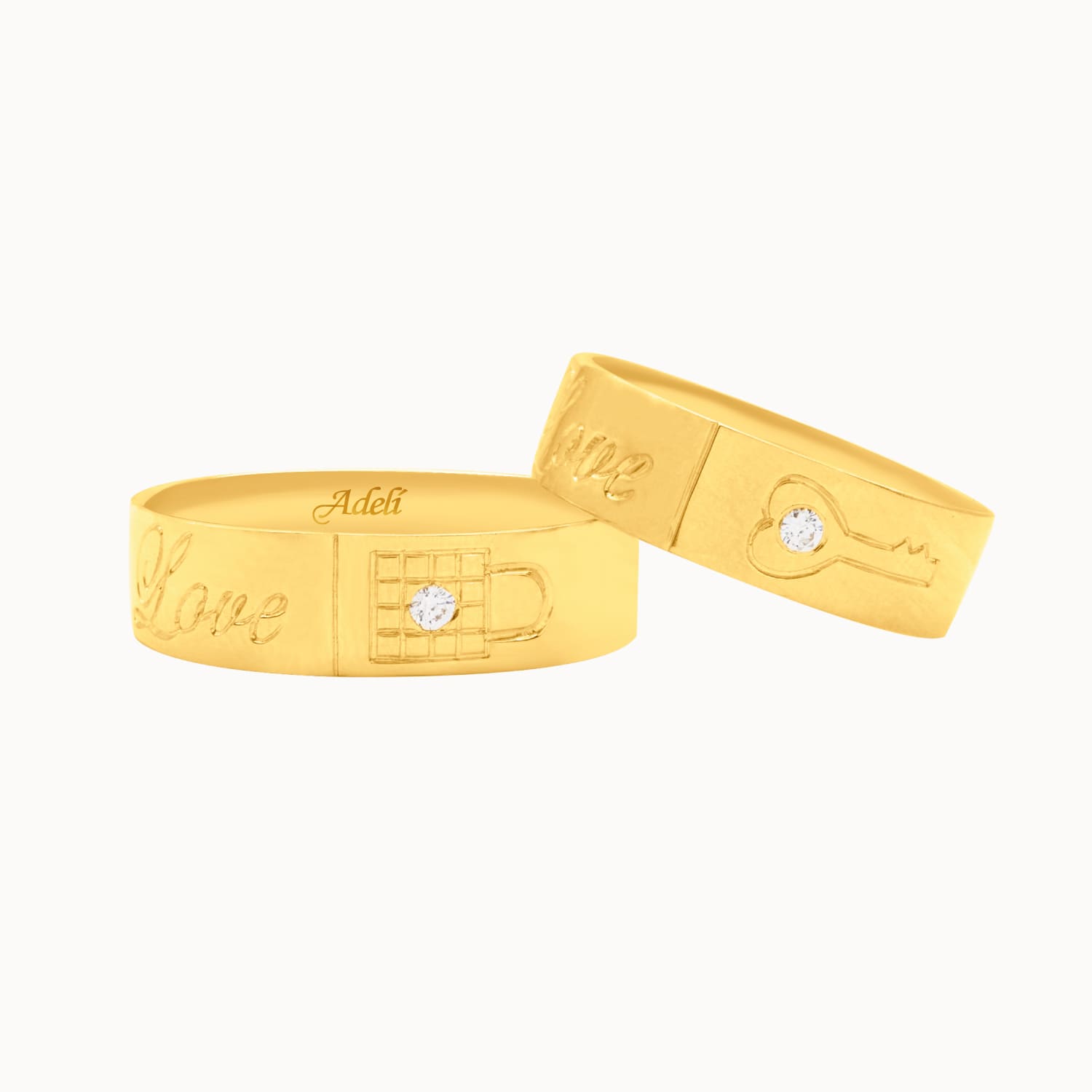 Aros de matrimonio en oro amarillo de 18K modelo lock heart