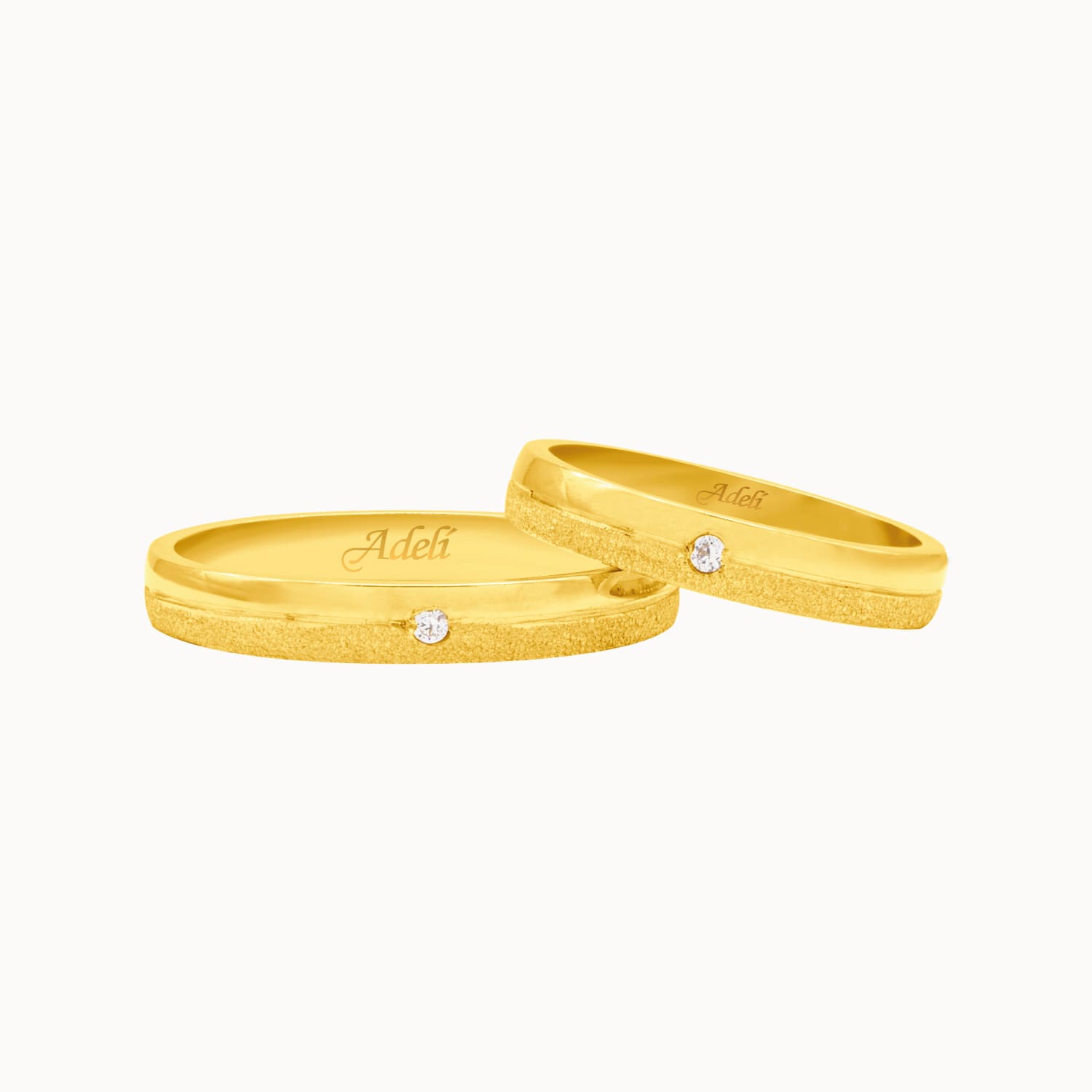 Aros de matrimonio en oro amarillo de 18K satinados y pulidos con piedra