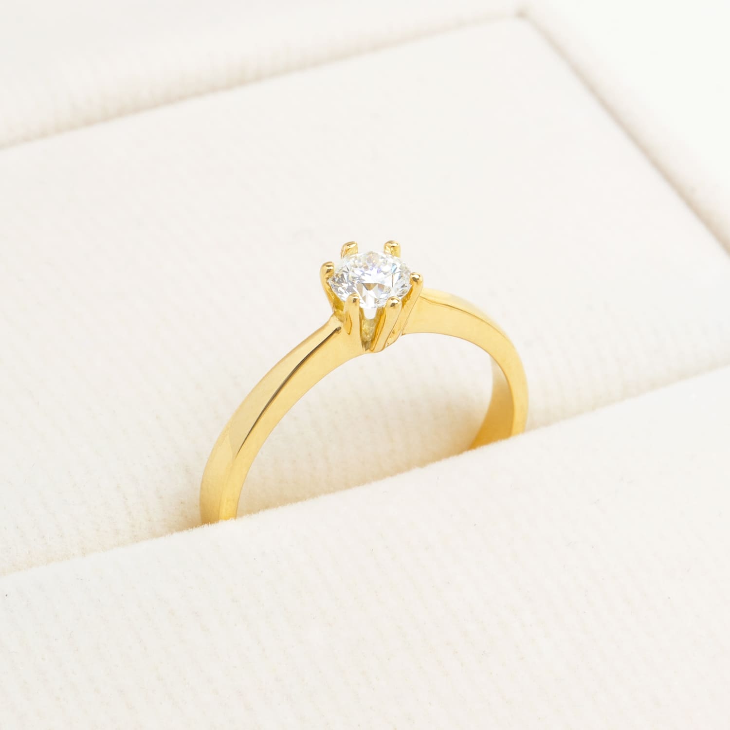 Sortija de Compromiso en oro amarillo de 18K modelo Venecia con un diamante central de 0.23 carats